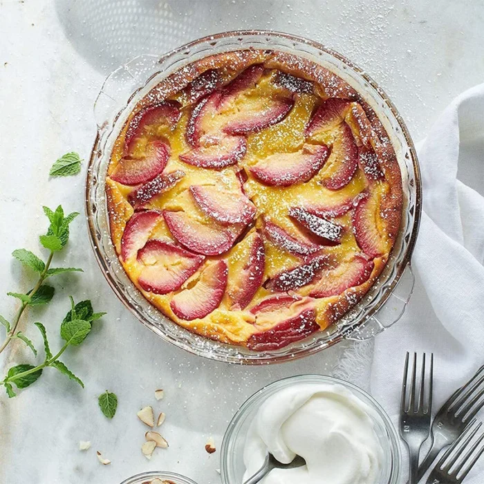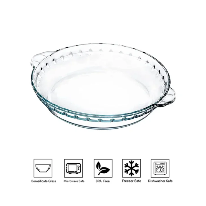 PUREFIT Borosilicate Multipurpose Round Glass Baking Fluted Dish, Microwave Oven & freezer Safe, Bake & Serve, Pizza Plate, 2000ml, Pack of 1