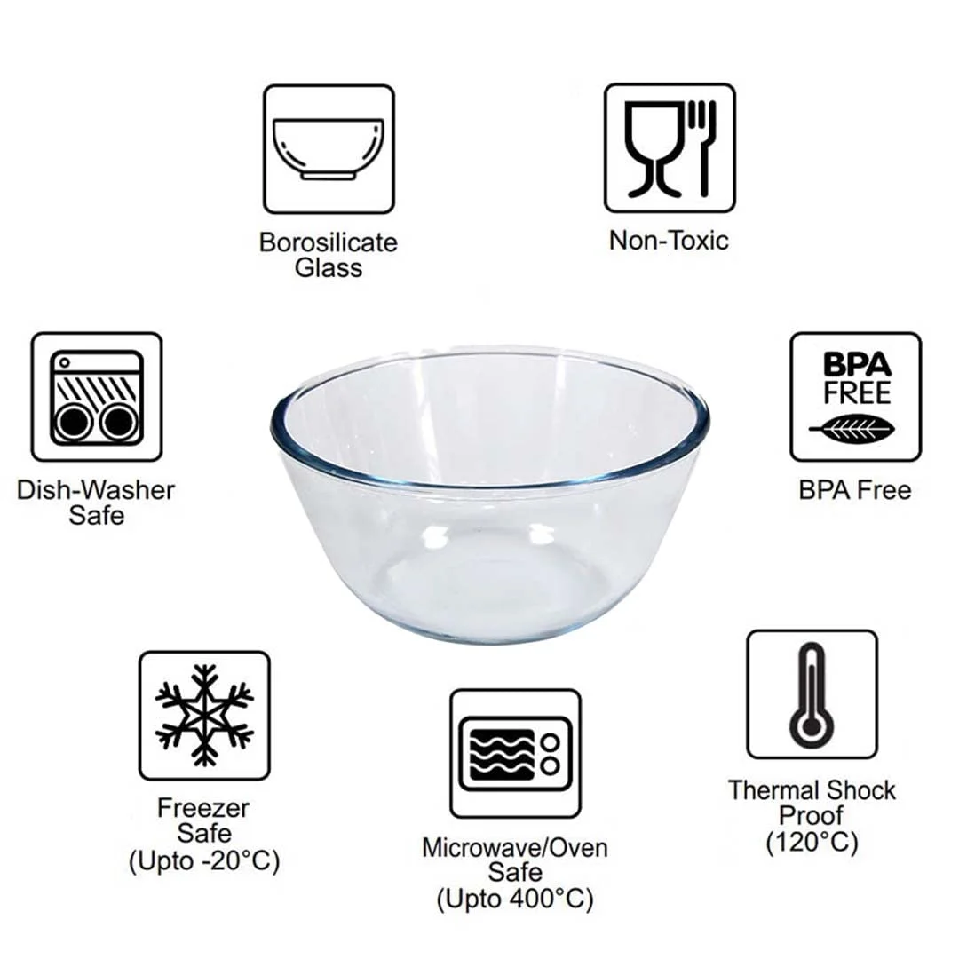 PureFit Borosilicate Multipurpose Round Glass Mixing & Serving Bowl with lid, Microwave Oven & Freezer Safe, 500ml & 1050ml, Set of 2 Festive Gift Pack